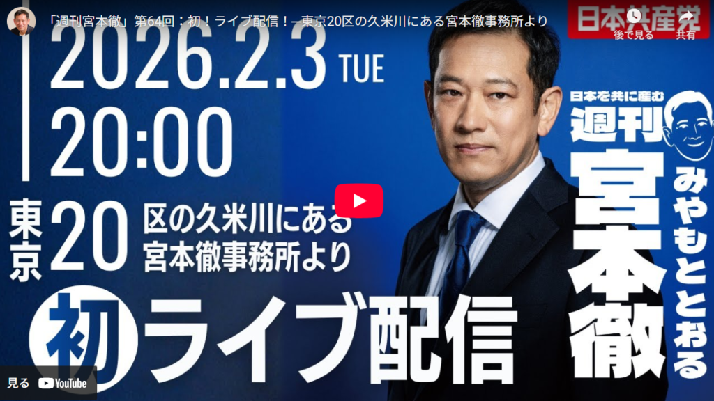 【動画】 「週刊宮本徹」第64回:初!ライブ配信!─東京20区の久米川にある宮本徹事務所より