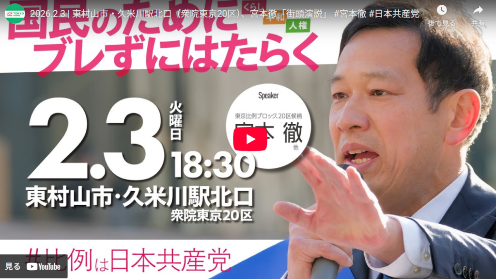 【動画】2026.2.3 | 東村山市・久米川駅北口(衆院東京20区)、宮本徹「街頭演説」 #宮本徹 #日本共産党