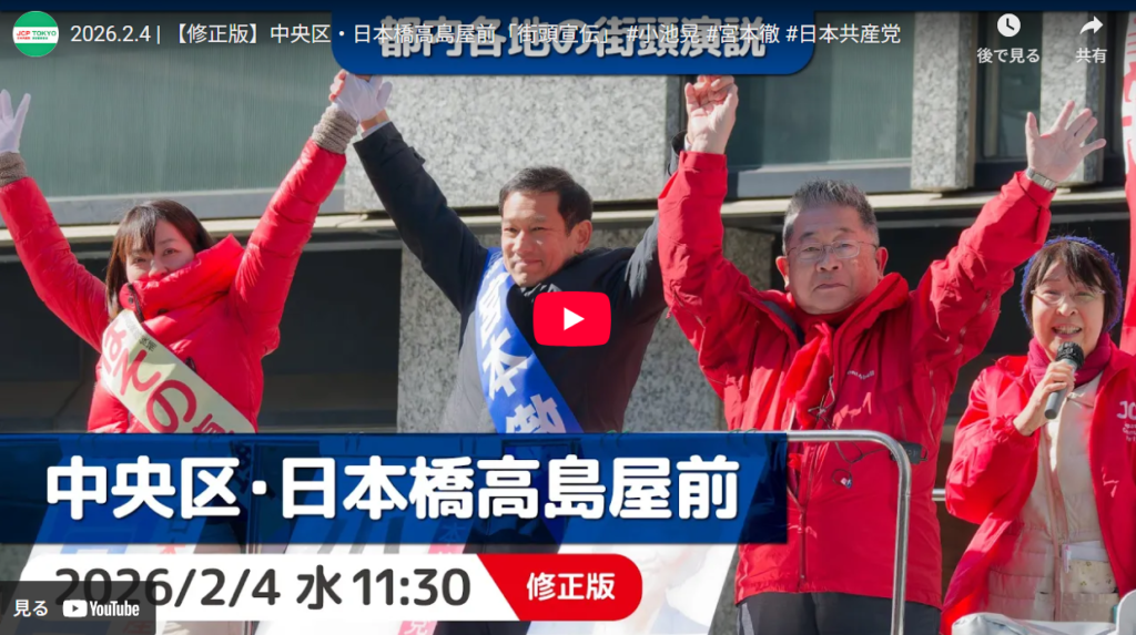 【動画】2026.2.4 | 【修正版】中央区・日本橋高島屋前「街頭宣伝」 #小池晃 #宮本徹 #日本共産党